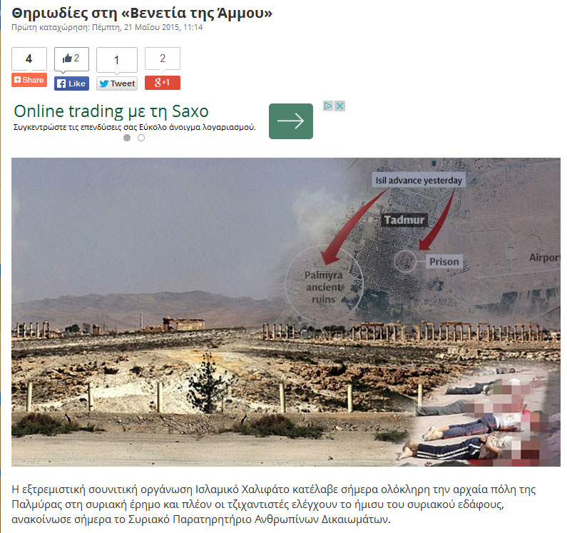 Υπό τον έλεγχο του Ισλαμικού Χαλιφάτου βρίσκεται πλέον ένα μεγάλο κομμάτι της Συρίας, μετά την κατάκτηση της Παλμύρας και την κατάληψη του τελευταίου μεθοριακού φυλακίου προς το Ιράκ.