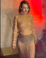 «Αποφάσισα να μην το παρακάνω με τα αξεσουάρ και σκέφτηκα ότι ένα διαμάντι αξίας 23 εκατ. ρουβλίων στα οπίσθιά μου θα ήταν αρκετό» είχε γράψει σε ανάρτησή της σχετικά με το φόρεμα που έβαλε στο πάρτι.