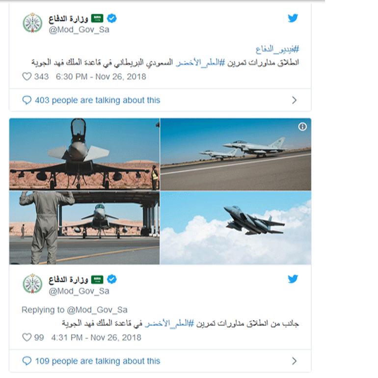 Οι κοινές ασκήσεις θα ολοκληρωθούν στις 11 Δεκεμβρίου, ενώ παράλληλα συνεχίζονται οι διπλωματικές εργασίες του Ηνωμένου Βασιλείου με το Ριάντ για τη δολοφονία του Σαουδάραβα δημοσιογράφου Jamal Khashoggi στην πρεσβεία του βασιλείου στην Κωνσταντινούπολη τον περασμένο Οκτώβριο.