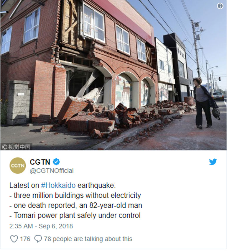 Ο ισχυρός σεισμός σημειώθηκε μεσούσης της νύχτας στη νήσο Χοκάιντο, σε απόσταση 62 χιλιομέτρων νοτιοανατολικά του Σαπόρο, μόλις δύο ημέρες έπειτα από καταστροφικό τυφώνα που είχε πλήξει την περιοχή της Οζάκα, στη δυτική Ιαπωνία.