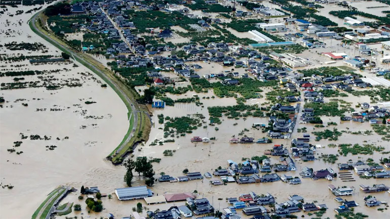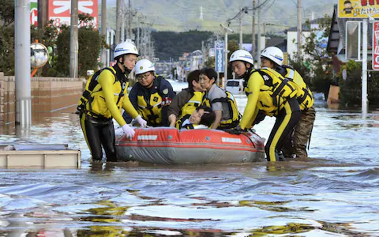 Σπίτια βυθισμένα στα νερά, κατολισθήσεις, χείμαρροι: ο τυφώνας έφερε σφοδρές βροχοπτώσεις, ποσότητες κατακρήμνισης ρεκόρ, σπέρνοντας την καταστροφή τη νύχτα του Σαββάτου προς Κυριακή στην κεντρική και στην ανατολική Ιαπωνία.
