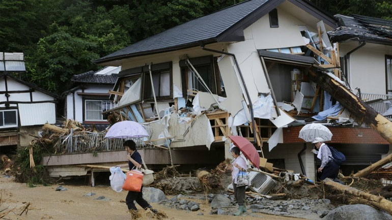 Τα υπερχειλισμένα ποτάμια κατέστρεψαν δρόμους, σπίτια και σχολεία στο μεγαλύτερο μέρος του νοτιότερου από τα κύρια νησιά της Ιαπωνίας, περίπου 900χλμ από το Τόκιο.