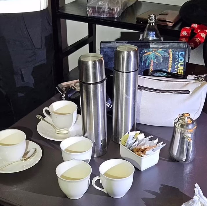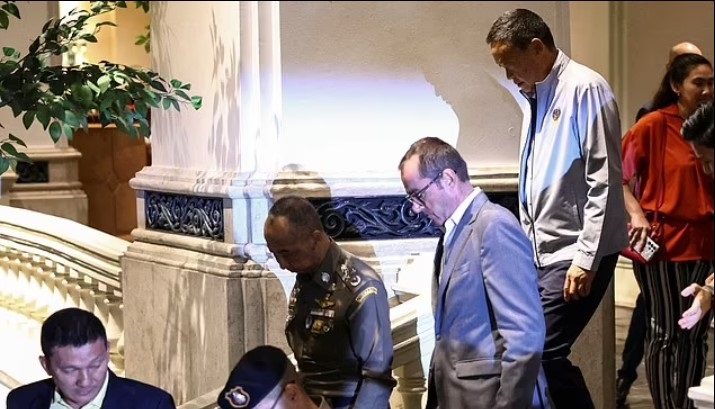 Στη φωτογραφία που κυκλοφόρησε η Βασιλική Αστυνομία της Ταϊλάνδης, ένα σώμα βρίσκεται δίπλα σε ένα τραπέζι με ένα φλιτζάνι τσαγιού και ανέγγιχτα γεύματα πάνω του, στο δωμάτιο του ξενοδοχείο Grand Hyatt Erawan στην Μπανγκόκ