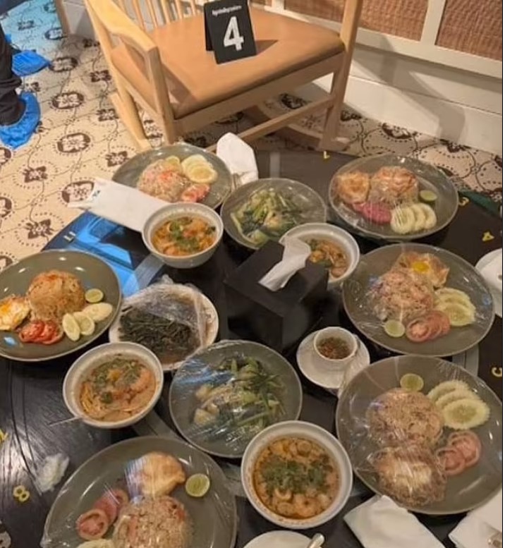 Άλλη μία εικόνα από το τραπέζι με τα ανέγγιχτα φαγητά που παρήγγειλαν τα 6 θύματα στο δωμάτιο που πιθανότατα δηλητηριάστηκαν από κυάνιο