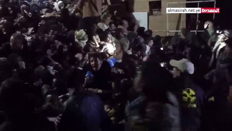 Εικόνες που μετέδωσε το τηλεοπτικό δίκτυο Al Masirah, το οποίο διαχειρίζονται οι Χούθι, δείχνουν ένα πυκνό πλήθος ανθρώπων, με κάποιους να πηδούν πάνω σε άλλους, προσπαθώντας να ανοίξουν δρόμο. Άλλοι χτυπούν τους διπλανούς τους, ενώ άνδρες με στρατιωτικές στολές προσπαθούν να σπρώξουν το πλήθος προς την αντίθετη κατεύθυνση. Σε άλλο βίντεο φαίνονται πτώματα στο έδαφος, εν μέσω γενικευμένου πανικού.
