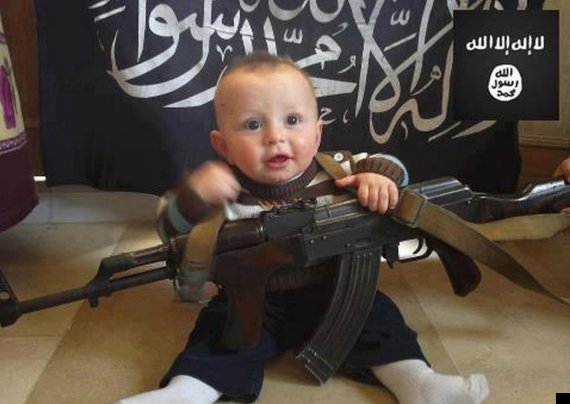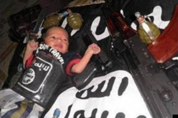 Η συγκλονιστική φωτογραφία ενός μωρού δίπλα στη σημαία του ισλαμικού κράτους, σε όπλα και χειροβομβίδες αναρτήθηκε χθες, Πέμπτη στο διαδίκτυο. Οι φωτογραφίες αναρτώνται με περηφάνια από τους ίδιους και δείχνουν μικρά παιδιά να κρατούν όπλα πολύ μεγαλύτερά από το σώμα τους ενώ στα σχόλιά τους γράφουν: «Αυτό είναι το αγόρι μου» ή καλούν τα παιδιά να μιμηθούν τον τζιχαντιστή «John» από το βρετανικό ισλαμικό κράτος που φέρεται να αποκεφάλισε τον James Foley και τον Steven Sotloff.