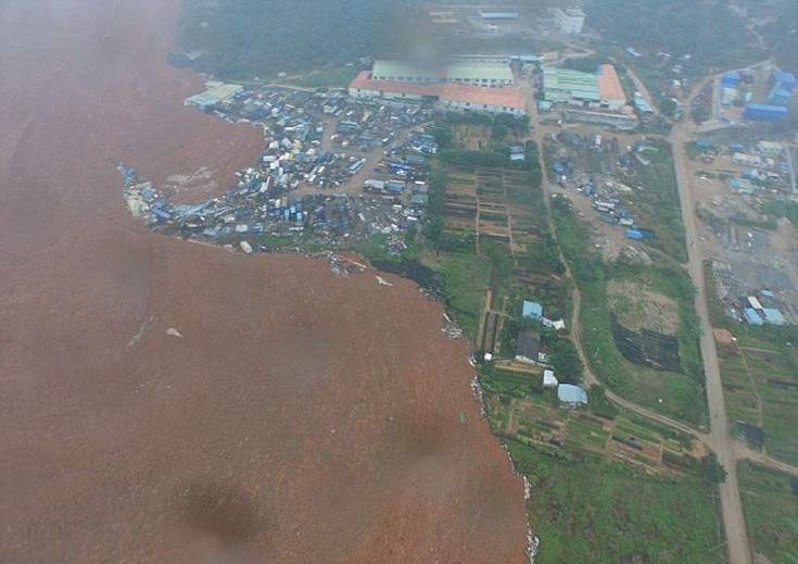 Ενενήντα ένα άτομα αγνοούνται στην Κίνα μετά την κατάρρευση ενός τεράστιου σωρού από βιομηχανική λάσπη, η οποία ισοπέδωσε 33 κτήρια θάβοντας πολλά από αυτά κάτω από χώμα.
