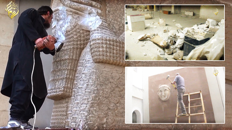 Το Χαλιφάτο καταστρέφει αρχαιότητες, με το πρόσχημα της ειδωλολατρίας, ενώ κάποια αγάλματα πωλούνται στη μαύρη αγορά για να χρηματοδοτήσουν τη δράση των τζιχαντιστών.