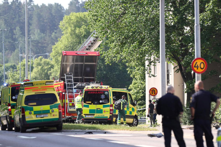 Η σουηδική δημόσια ραδιοφωνία ανέφερε πως μια τεράστια έκρηξη κατέστρεψε παράθυρα και μπαλκόνια σε ένα πενταώροφο κτίριο κατοικιών και προκάλεσε ζημιές και σε γειτονικά κτήρια.