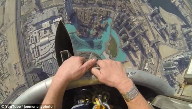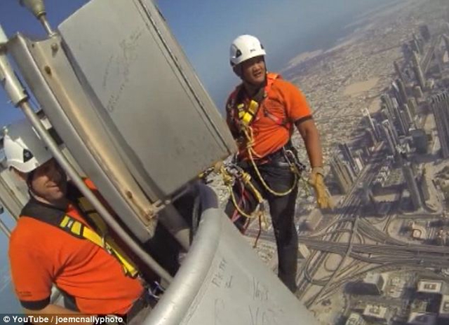 Πρωταγωνιστές των φωτογραφιών, εκτός από τη μοναδική θέα, είναι οι εργάτες που έχουν αναλάβει την συντήρηση του γιγαντιαίου κτιρίου – ύψους 828 μέτρων!