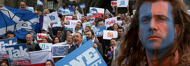 Έτσι, δεν ανησυχεί μόνο το Λονδίνο για το ενδεχόμενο της ανεξαρτητοποίησης της Σκωτίας. Η ΕΕ απειλείται με διάλυση (όχι μόνο από τους ευρωσκεπτικιστές, οι οποίοι έχουν την υπόσχεση του βρετανού πρωθυπουργού πως «αν εκλεγούν πάλι οι Τόριδες θα κάνει δημοψήφισμα για την παραμονή ή όχι του Ηνωμένου Βασιλείου στην ΕΕ»),αλλά και τους απανταχού εθνικιστές.