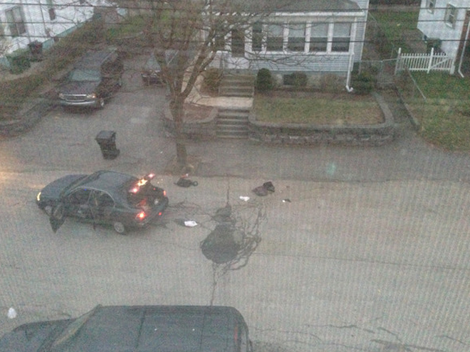 Ακολουθούν οι φωτογραφίες στις οποίες φαίνονται τα αδέλφια Tsarnaev πίσω απο το μαύρο SUV, η βόμβα και οι άνδρες της αστυνομίας: