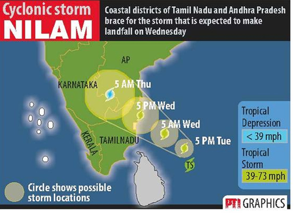 Σχολεία, Πανεπιστήμια και δημόσιες υπηρεσίες στο λιμάνι του Τσενάι δεν λειτούργησαν και σήμερα, Πέμπτη, προκειμένου να προστατευτούν οι κάτοικοι της πόλης, την ίδια στιγμή που είχαν δοθεί σαφείς προειδοποιήσεις στους αλιείς να μην βγουν στα ανοικτά με τα σκάφη τους.