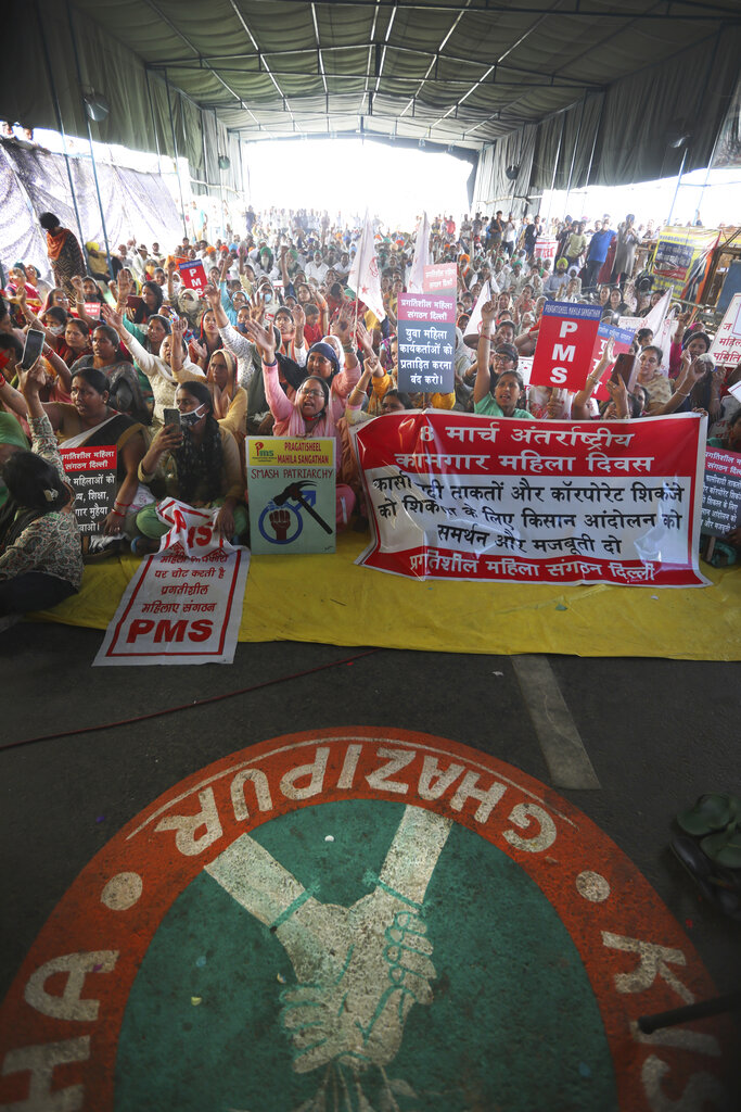 Χιλιάδες γυναίκες ενώθηκαν με τις διαδηλώσεις των αγροτών στα περίχωρα του Δελχί σήμερα, Ημέρα της Γυναίκας, απαιτώντας την κατάργηση των νέων νόμων που ανοίγουν τις αγορές αγροτικών προϊόντων σε ιδιώτες αγοραστές.