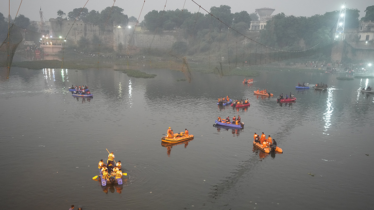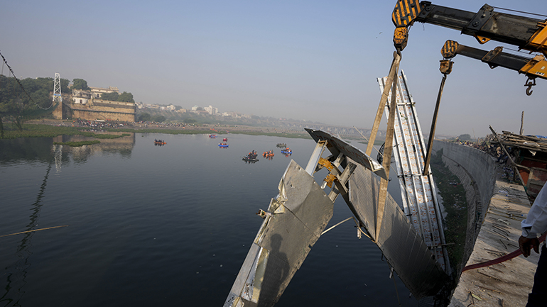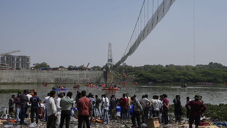 Indian police questioning eight people over the collapse of suspension bridge that killed at least 141