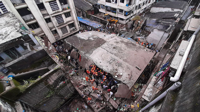 Οι καταρρεύσεις κτηρίων είναι συνηθισμένο φαινόμενο στην Ινδία την περίοδο των μουσώνων, από τον Ιούνιο έως τον Σεπτέμβριο, καθώς οι καταρρακτώδεις βροχές διαβρώνουν τα θεμέλιά τους. Τον περασμένο μήνα, τουλάχιστον 13 άνθρωποι σκοτώθηκαν όταν κατέρρευσε κτήριο στη βιομηχανική πόλη Μαχάντ, περίπου 165 χιλιόμετρα νότια της Μουμπάι.