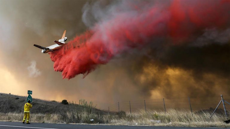 Πάνω από 8.000 πυροσβέστες δίνουν μάχη με τις φλόγες, με την υποστήριξη 70 ελικοπτέρων, 30 αεροσκαφών κι εκατοντάδων οχημάτων.