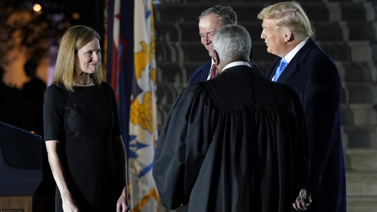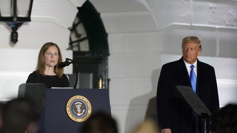 Ο Τραμπ κατήγαγε τεράστια πολιτική νίκη με τον πρακτικά ισόβιο διορισμό της Μπάρετ, παρά την εναντίωση των Δημοκρατικών, που χαρακτήρισαν «έκνομη» τη διαδικασία τόσο κοντά στην εκλογική αναμέτρηση. Εξήρε τα «άψογα διαπιστευτήρια» της 48χρονης μητέρας επτά παιδιών, πολύ θρησκευόμενης χριστιανής, πολέμιας της άμβλωσης.