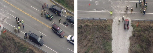 Όπως μετέδωσε το Associated Press, τρία μέλη των ειδικών συνεργείων που έσπευσαν στο σημείο μεταφέρθηκαν με εγκαύματα στο Πανεπιστημιακό Νοσοκομείο του Λούισβιλ, εκ των οποίων το ένα νοσηλεύεται σε κρίσιμη κατάσταση.