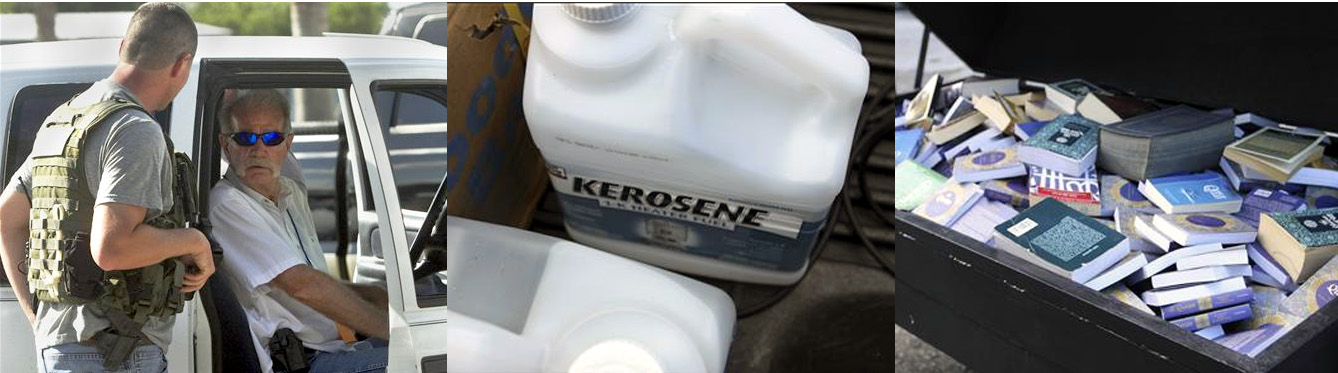 Ο 61 ετών πάστορας ο οποίος λειτουργούσε σε μια μικρή ευαγγελική εκκλησία του Gainesville συνελήφθη την περασμένη Τετάρτη μαζί με ένα ακόμη νεαρό συνεργάτη του, με κατηγορίες κακουργηματικού χαρακτήρα και μάλιστα 3ου βαθμού, καθώς είχε συλλέξει τεράστια ποσότητα κηροζίνης την οποία μάλιστα μετέφερε σε ακατάλληλα δοχεία και με την οποία είχε εμποτίσει τα χιλιάδες ιερά βιβλία των μουσουλμάνων.