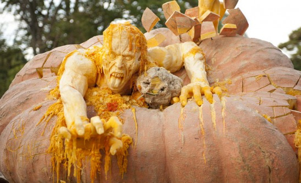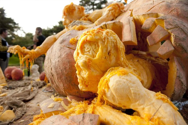 Ο γλύπτης Ray Villafane και η ομάδα του χρησιμοποίησαν όλη τη δεξιοτεχνία τους προκειμένου να δημιουργήσουν ζόμπι από… κολοκύθα, τα οποία και παρουσίασαν στη διάρκεια του «Giant Pumpkin Carving Weekend».