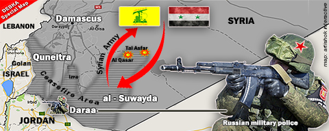 Από τις πρόσφατες κινήσεις των εμπλεκομένων δυνάμεων στην κεντρική, νοτιοδυτική και νοτιοανατολική Συρία προκύπτουν τα εξής δεδομένα: η Ρωσία αναλαμβάνει όλο και περισσότερες ευθύνες επί του εδάφους και σε κρίσιμα στρατηγικά σημεία εκτοπίζει τις δυνάμεις του νομίμου συριακού στρατού και των Χεσμπολάχ, θέτοντας τον έλεγχο των περιοχών αυτών υπό αμιγώς ρωσική διοίκηση, όπως συνέβη και την Πέμπτη 13 Ιουλίου, με την είσοδο στην πόλη Daraa στα σύνορα με την Ιορδανία ρωσικών μονάδων αλεξιπτωτιστών με την παράλληλη εκκένωση της πόλης από τις στρατιωτικές δυνάμεις που πρόσκεινται στη Δαμασκό.