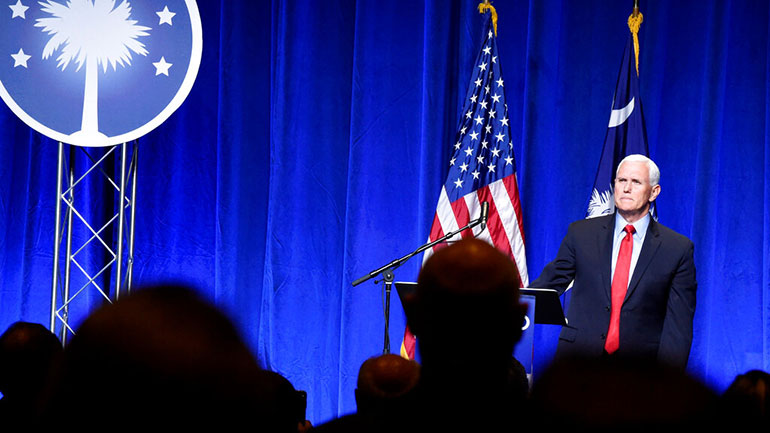 Ο Πενς μίλησε για περίπου μισή ώρα στην Κολούμπια, στη Νότια Καρολίνα, απευθυνόμενος στη θρησκευτική συντηρητική οργάνωση Palmetto Family Council.