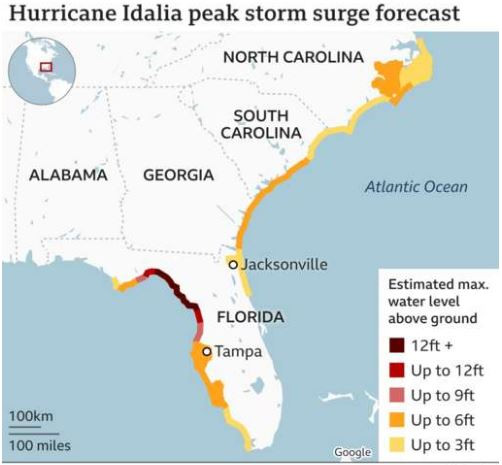 Η καταιγίδα αναμένεται να επηρεάσει ένα μεγάλο μέρος του κεντρικού τμήματος της πολιτείας, συμπεριλαμβανομένων πόλεων όπως η Τάμπα και το Ορλάντο, και να πλησιάσει την ακτογραμμή της Καρολίνας την Πέμπτη, πρόσθεσε το Εθνικό Κέντρο Τυφώνων.