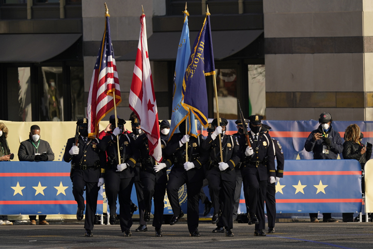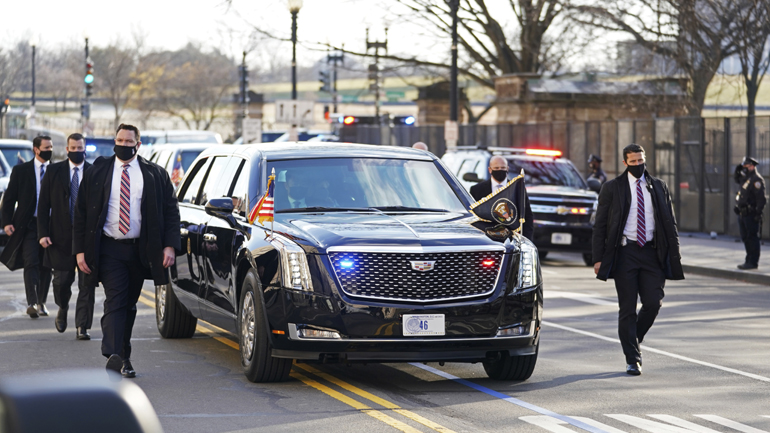 Με τη στρατιωτική μπάντα και τη στρατιωτική πομπή να προηγείται, η λιμουζίνα που μετέφερε τον νέο πρόεδρο έφτασε στον Λευκό Οίκο, σε μια ομοσπονδιακή πρωτεύουσα που έμοιαζε με οχυρωμένο στρατόπεδο.