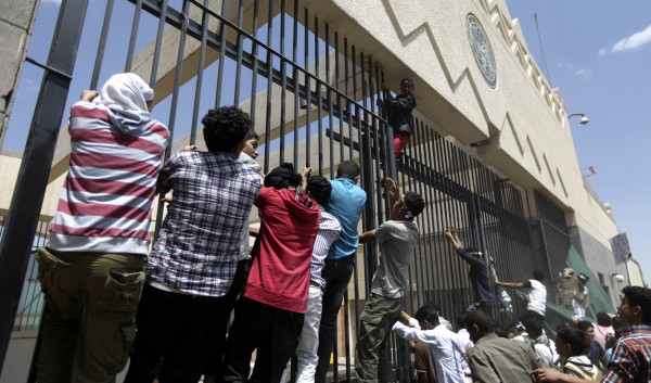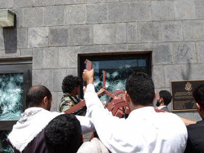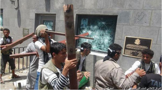 Περισσότεροι από 4.000 διαδηλωτές εισέβαλαν το μεσημέρι στην πρεσβεία των ΗΠΑ στη Σαναά της Υεμένης. Το εξοργισμένο πλήθος διαμαρτυρόταν για την επίμαχη ταινία του Αμερικανο-εβραίου επιχειρηματία για το Iσλάμ.