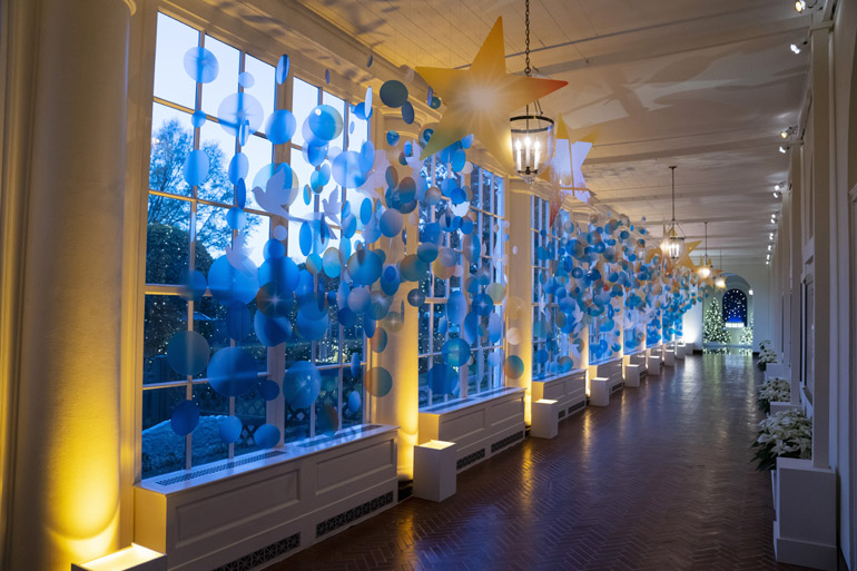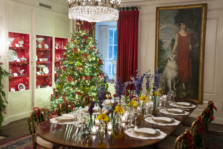 Ωστόσο αυτό που αναμφίβολα προσήλκυσε περισσότερο από όλα την προσοχή στη διακόσμηση, την επίβλεψη της οποίας είχε η Πρώτη Κυρία Τζιλ Μπάιντεν, είναι μικρές πινελιές που θυμίζουν τους προηγούμενους ενοίκους του Λευκού Οίκου.