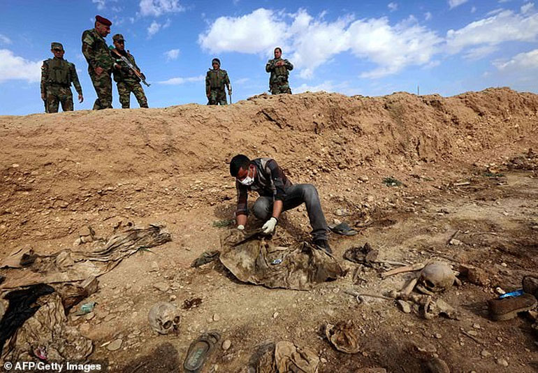 Οι μαχητές του ISIS τοποθετούσαν οπουδήποτε τα θύματά τους, ακόμα και μέσα σε πηγάδια. Οι ερευνητές δήλωσαν ότι νότια της Μοσούλης, πόλη που βρισκόταν υπό τον έλεγχο του ISIS, θα μπορούσαν να υπάρχουν χιλιάδες σοροί ανθρώπων.