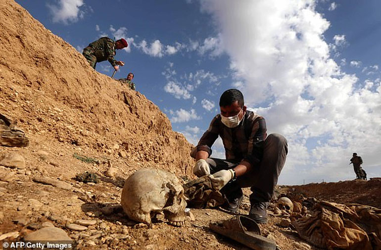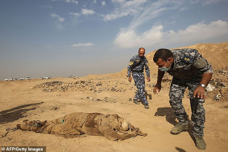 Οι μαχητές του ISIS τοποθετούσαν οπουδήποτε τα θύματά τους, ακόμα και μέσα σε πηγάδια. Οι ερευνητές δήλωσαν ότι νότια της Μοσούλης, πόλη που βρισκόταν υπό τον έλεγχο του ISIS, θα μπορούσαν να υπάρχουν χιλιάδες σοροί ανθρώπων.