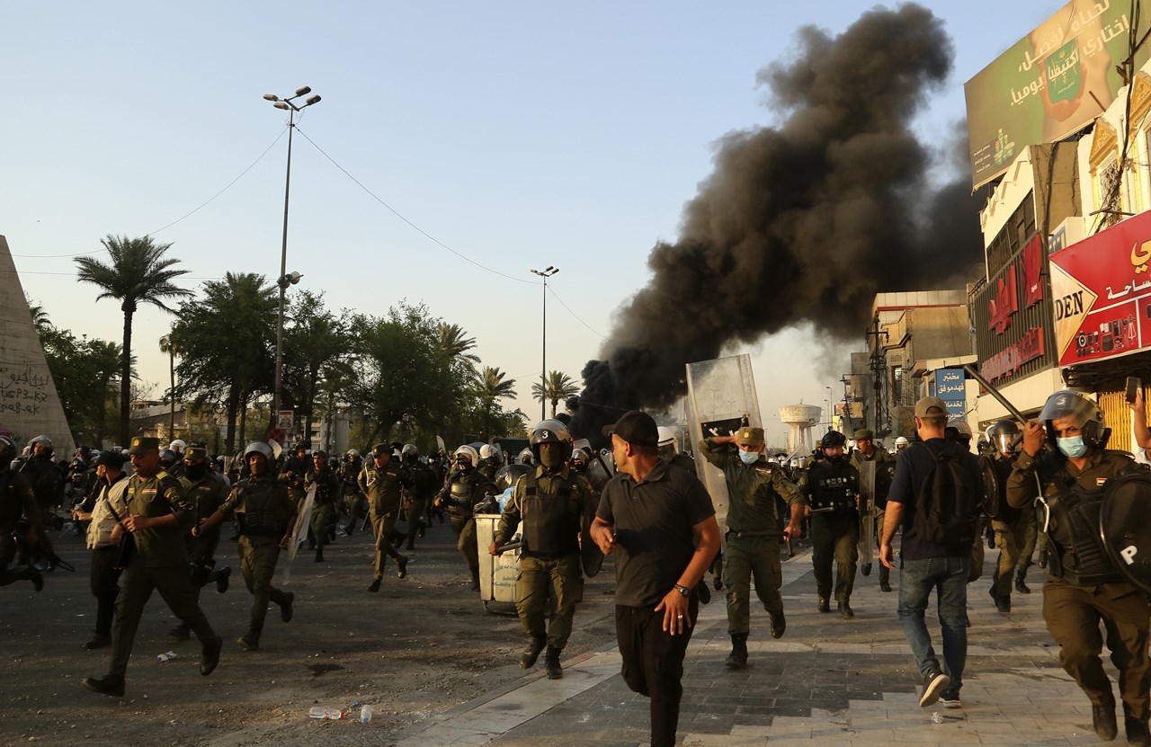 Ο πρώτος διαδηλωτής που έχασε τη ζωή του, ο Μοχάμεντ Μπάκερ, είχε πάει στην πρωτεύουσα από την Ντιουανίγια (νότια) για να πάρει μέρος στην κινητοποίηση, ανέφερε το νοσοκομείο Αλ Κίντι της Βαγδάτης, όπου διακομίστηκε. Ιατρική πηγή ανέφερε πως τραυματίστηκε από σφαίρα στον λαιμό και εξέπνευσε λίγη ώρα μετά την εισαγωγή του στο τμήμα επειγόντων περιστατικών. Ο δεύτερος διαδηλωτής δεν έχει αναγνωριστεί μέχρι στιγμής.