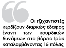 Οι χριστιανοί και μέλη της θρησκευτικής μειονότητας Γεζίντι, καταφεύγουν στην Τουρκία ενώ οι σουνίτες μαχητές του Ισλαμικού Κράτους κερδίζουν διαρκώς έδαφος έναντι των κουρδικών δυνάμεων στο βόρειο Ιράκ και μέχρι στιγμής φέρεται να έχουν καταλάβει 15 πόλεις, το στρατηγικής σημασίας φράγμα της Μοσούλης και στρατιωτική βάση, με τη διεθνή ανησυχία να χτυπά «κόκκινο» και τη Γαλλία να ζητά έκτακτη σύνοδο του Συμβουλίου Ασφαλείας του ΟΗΕ.