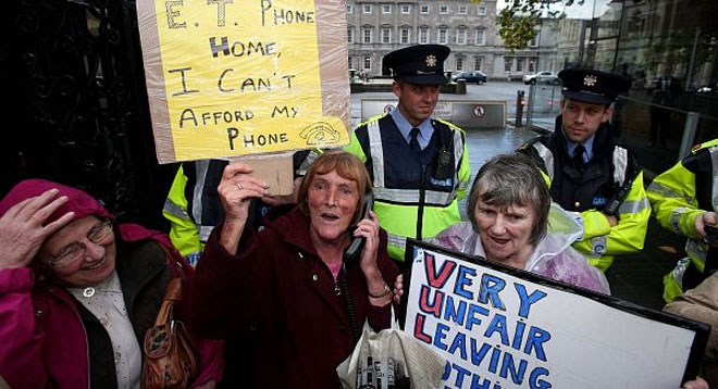 Η ιρλανδική κυβέρνηση κατήργησε την προηγούμενη εβδομάδα την επιδότηση στις τηλεφωνικές επικοινωνίες, αύξησε τον φόρο στα συνταγογραφούμενα φάρμακα και ανακοίνωσε ότι θα μειώσει δραστικά τον αριθμό των ανθρώπων που δικαιούνται δωρεάν περίθαλψη.