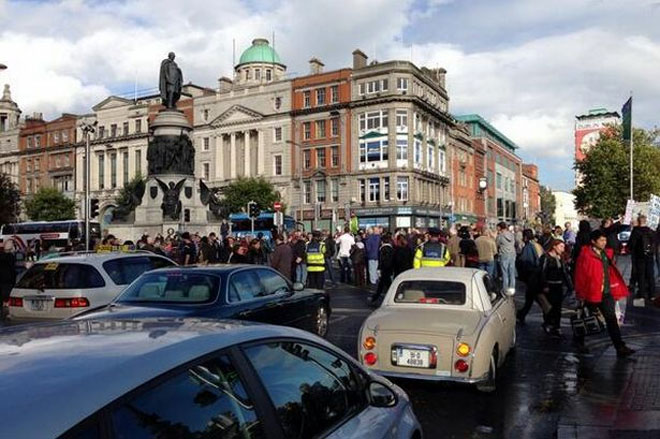 Οι διαδηλωτές ζήτησαν από τον Ιρλανδό πρωθυπουργό Έντα Κένι να παραιτηθεί. Η κυβέρνησή του Κένι έχει επιτύχει τους στόχους που της είχαν τεθεί βάσει του μνημονίου το οποίο συνόδευε το δάνειο των 85 δισεκατομμυρίων ευρώ, όμως εξαιτίας της λιτότητας έχει μειωθεί η καταναλωτική δαπάνη, προκαλώντας ανησυχίες ότι η οικονομία δεν θα αναπτυχθεί αρκετά γρήγορα ώστε να μειωθεί το χρέος της χώρας.