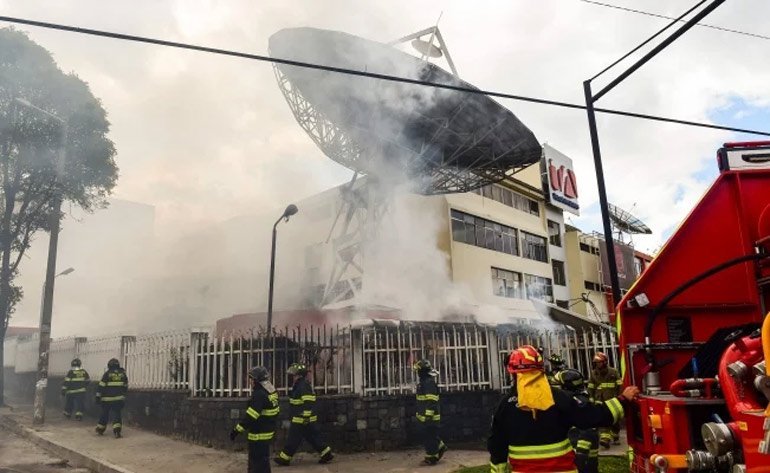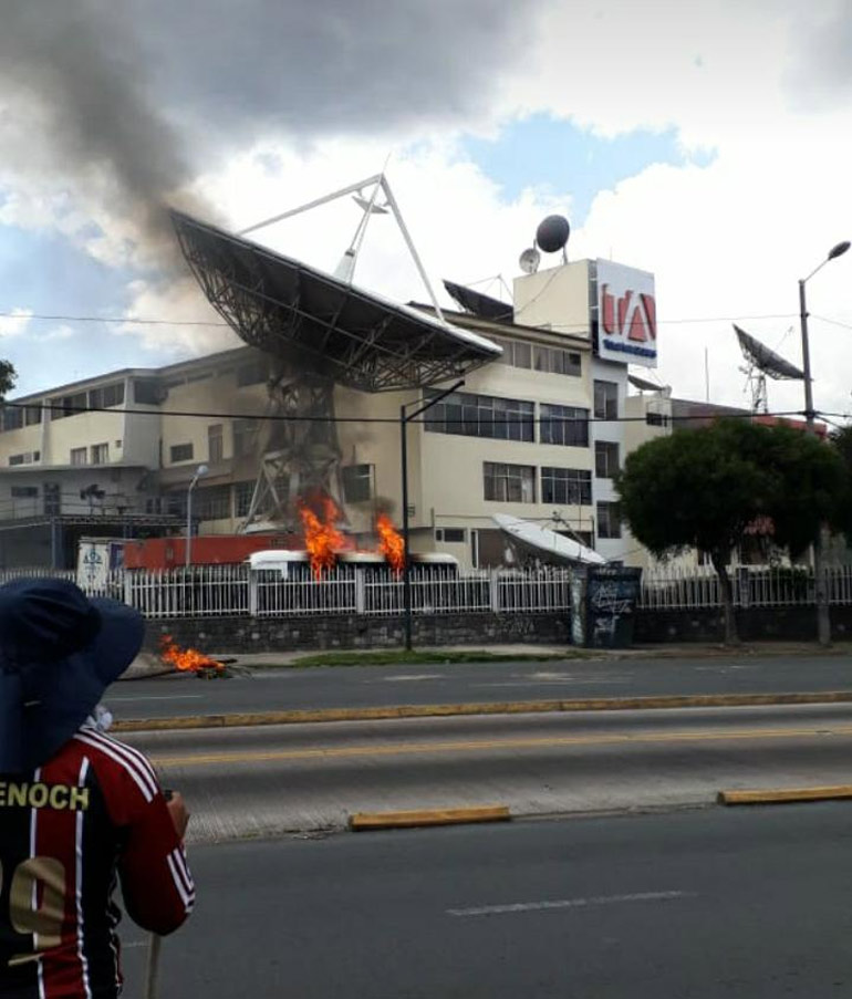 Διαδηλωτές επιτέθηκαν το Σάββατο στα γραφεία του τηλεοπτικού δικτύου Teleamazonas και της εφημερίδας «El Mercurio» στο Κίτο, κατήγγειλαν τα δύο ΜΜΕ, καθώς η συνεχιζόμενη βία στην πρωτεύουσα του Ισημερινού ώθησε την κυβέρνηση του προέδρου Λενίν Μορένο να κηρύξει απαγόρευση κυκλοφορίας και στρατιωτικό νόμο.