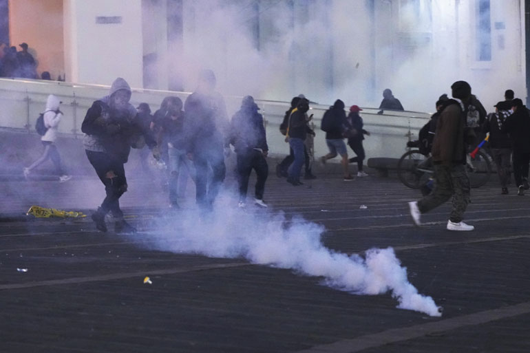 Το Κίτο, σχεδόν 1.000 διαδηλωτές προσπάθησαν να απομακρύνουν τους μεταλλικούς φράκτες γύρω από την έδρα της προεδρίας.