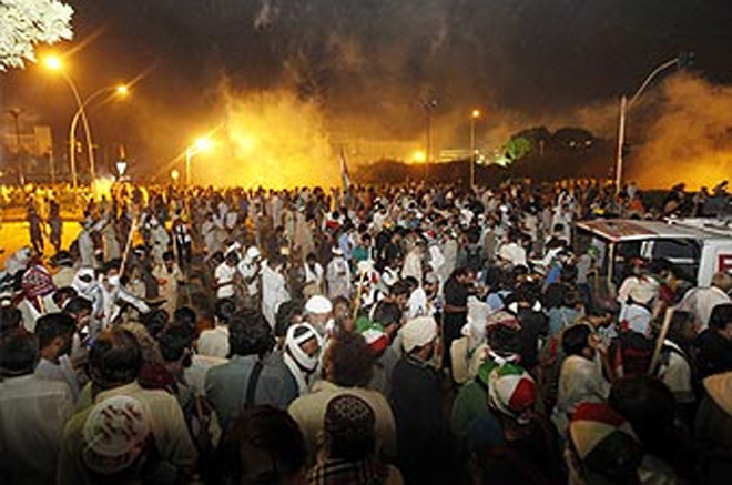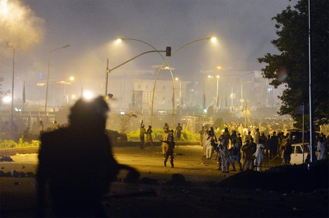 Νωρίτερα χθες, ο Σαρίφ εξέδωσε μια ανακοίνωση με την οποία διεμήνυσε ότι δεν υπάρχει κανένα τέτοιο ενδεχόμενο. Οι διαδηλωτές αποπειράθηκαν να πολιορκήσουν την κατοικία του πρωθυπουργού για πρώτη φορά χθες και – επίσης για πρώτη φορά – η αστυνομία έκανε εκτεταμένη χρήση δακρυγόνων και πλαστικών σφαιρών για να τους απωθήσει.