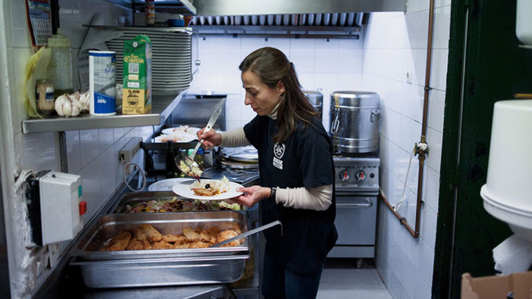 Περισσότεροι από 100 άνθρωποι τρώνε κάθε βράδυ στο εστιατόριο. Τον καθαρισμό του εστιατορίου και το σερβίρισμα το έχουν αναλάβει εθελοντές.