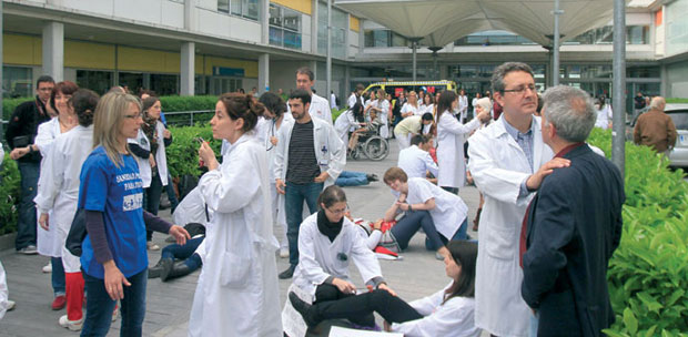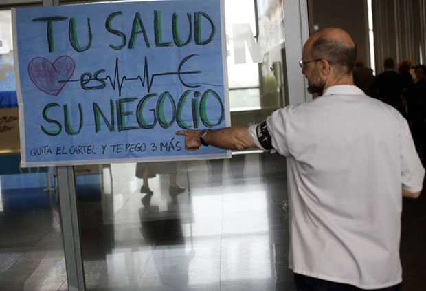 Οι εργαζόμενοι στον τομέα της Υγείας στην Ισπανία πραγματοποίησαν την Τρίτη του Πάσχα την πρώτη από τις συνολικά πέντε απεργίες, μέσω των οποίων εκφράζουν την αντίθεσή τους στα σχέδια της κυβέρνησης του πρωθυπουργού, Mariano Rajoy, για μείωση των κρατικών κονδυλίων προς τα νοσοκομεία.
