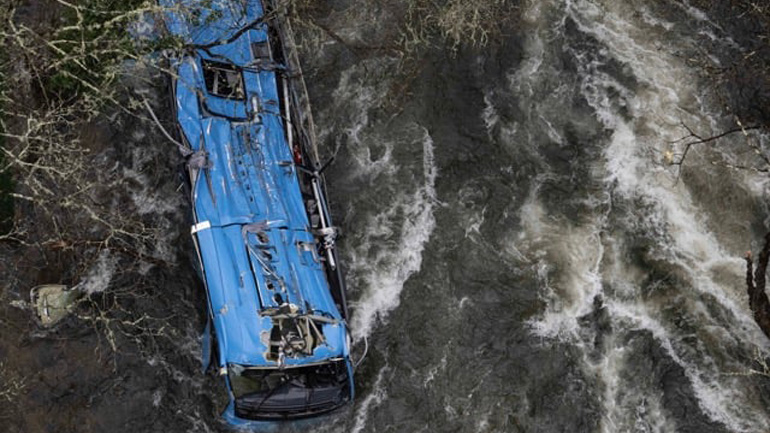 Στους έξι ανέρχονται οι νεκροί και 2 οι τραυματίες από την πτώση του λεωφορείου. Σύμφωνα με τις αρχές, στο όχημα επέβαιναν συνολικά οκτώ άτομα. Δύο εντοπίστηκαν ζωντανοί: ο οδηγός και μια επιβάτιδα, που νοσηλεύονται σε τοπικά νοσοκομεία.