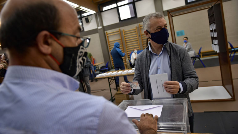 Οι ψηφοφόροι στη Βόρεια Ισπανία φορούν μάσκες και κάνουν χρήση υγρού απολυμαντικού χεριών πριν εισέλθουν σήμερα στα εκλογικά τμήματα, καθώς η Γαλικία και η Χώρα των Βάσκων διεξάγουν περιφερειακές εκλογές, ενώ παράλληλα βρίσκεται σε εξέλιξη η μάχη κατά της εξάπλωσης της πανδημίας COVID-19.