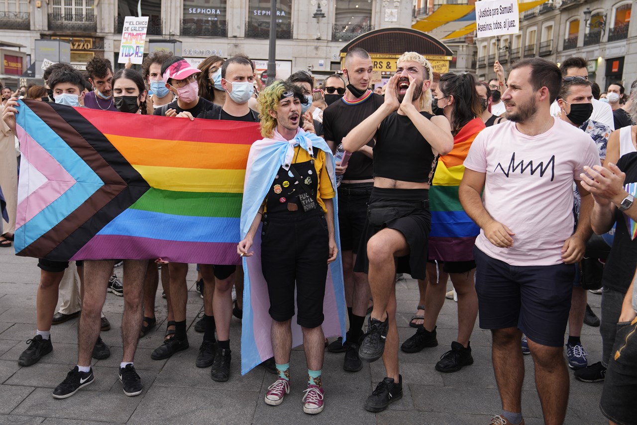 Διαδηλωτές κατέβηκαν ξανά στους δρόμους σε αρκετές ισπανικές πόλεις χθες Κυριακή απαιτώντας δικαιοσύνη για τη δολοφονία του νεαρού ομοφυλόφιλου Σαμουέλ Λουίζ που ξυλοκοπήθηκε μέχρι θανάτου πριν περίπου μια εβδομάδα σε μια φερόμενη ομοφοβική επίθεση, που συγκλόνισε την Ισπανία.