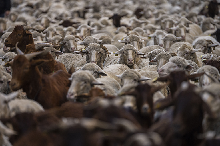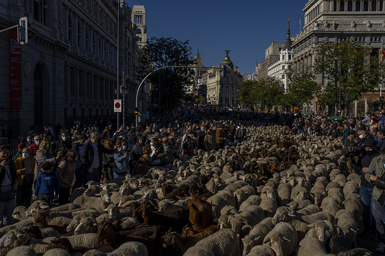 Οι δρόμοι της Μαδρίτης γέμισαν σήμερα, Κυριακή, με πρόβατα και ήχους από τα κουδούνια τους, καθώς οι βοσκοί οδηγούσαν τα κοπάδια τους μέσα από το κέντρο της ισπανικής πρωτεύουσας, ακολουθώντας αρχαίους δρόμους μετακίνησης των αιγοπροβάτων για τον χειμώνα.