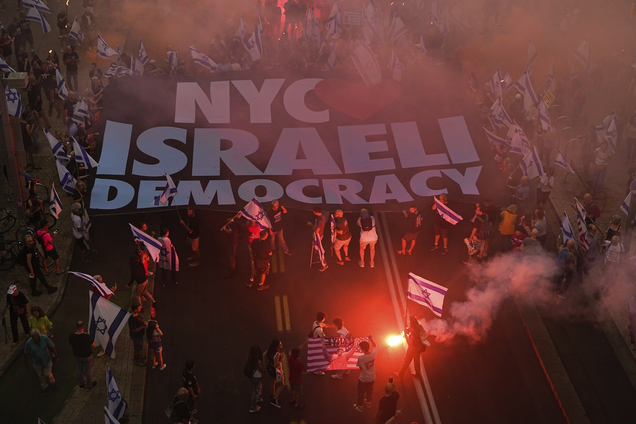 Οι διαδηλώσεις αυτή την εβδομάδα ήταν επικεντρωμένες μεταξύ άλλων στην κλιμάκωση της βίας στο πλαίσιο της ισραηλινοπαλαιστινιακής σύγκρουσης και σε μια κρίσιμη ψηφοφορία στο κοινοβούλιο τις επόμενες ημέρες.