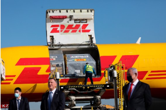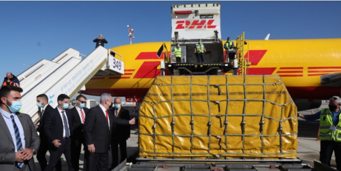 Ένα αεροπλάνο cargo της DHL προσγειώθηκε στο αεροδρόμιο Μπεν Γκουριόν κι έτσι το Ισραήλ έλαβε την πρώτη αποστολή εμβολίων κορωνοϊού, με τους ειδικούς να προβλέπουν πως η χώρα θα έχει αρκετό απόθεμα για περίπου το ¼ του πληθυσμού μέχρι το τέλος του έτους.