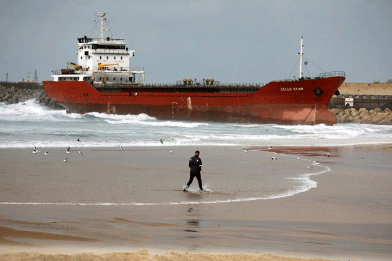 Ένα μεγάλο φορτηγό πλοίο κατέληξε σε μια παραλία στο νότιο Ισραήλ, καθώς παρασύρθηκε από το αγκυροβόλιό του, κοντά στο λιμάνι Ασντόντ, λόγω των πολύ ισχυρών ανέμων που πνέουν στην περιοχή.