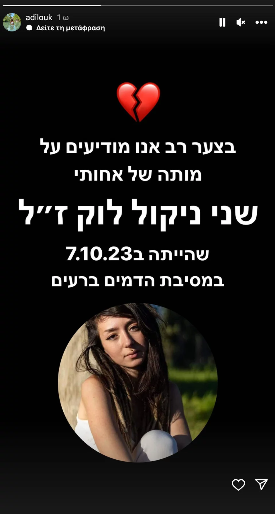 Σύμφωνα με την Bild, η αδελφή της Σάνι Λουκ έγραψε στο Instagram: «Με λύπη μας ανακοινώνουμε τον θάνατο της αδελφής μου, Shani Nicole Louk, η μνήμη της ας είναι ευλογία».